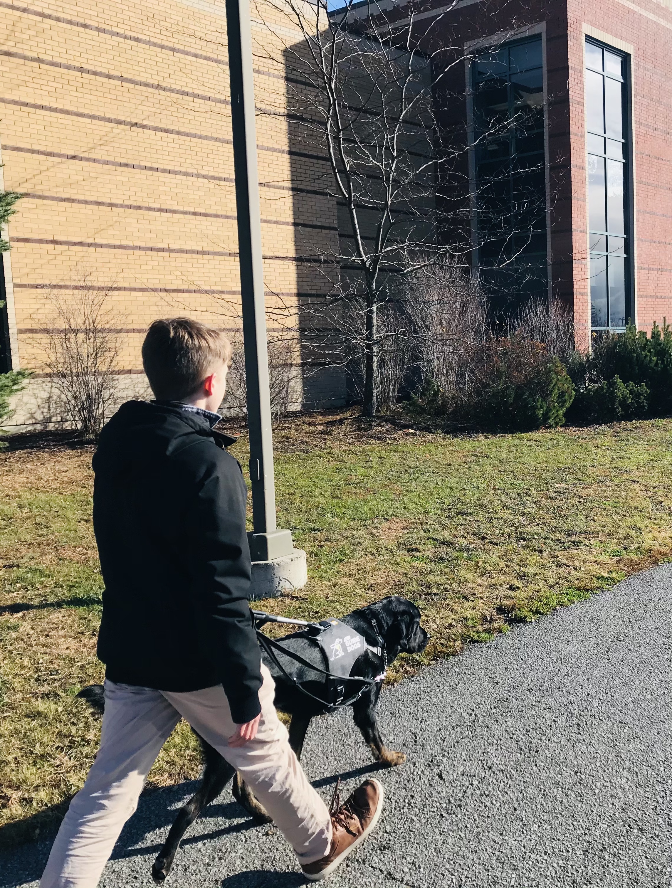 A guide dog team consists of a partnership between a person (handler) who is blind or partially sighted and their highly intelligent, professionally trained guide dog. They work together in the true sense of the word “team”, as they rely on each other and move together as one.