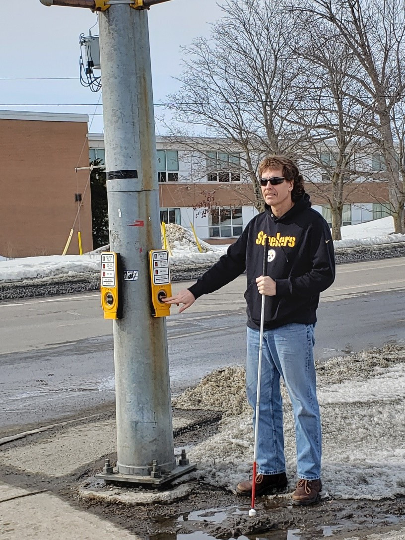 A couple of years ago, my wife and I moved to Parry Sound to be closer to our family and start the home stretch to retirement. As an individual with vision loss who enjoys exploring communities, I realized that this small town was lacking safe/accessible traffic light crossings.