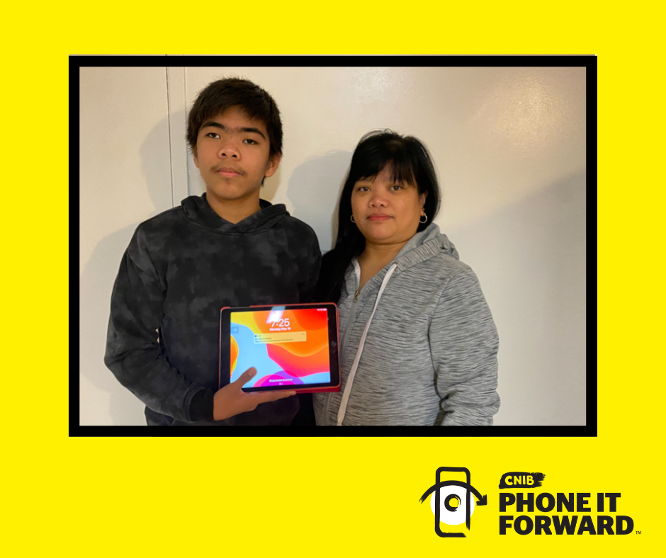 Mary Lene Carbungo’s son, John, had been asking her to buy him an iPad for some time, so she registered him to receive a donated device when she heard about CNIB’s Phone it Forward program.