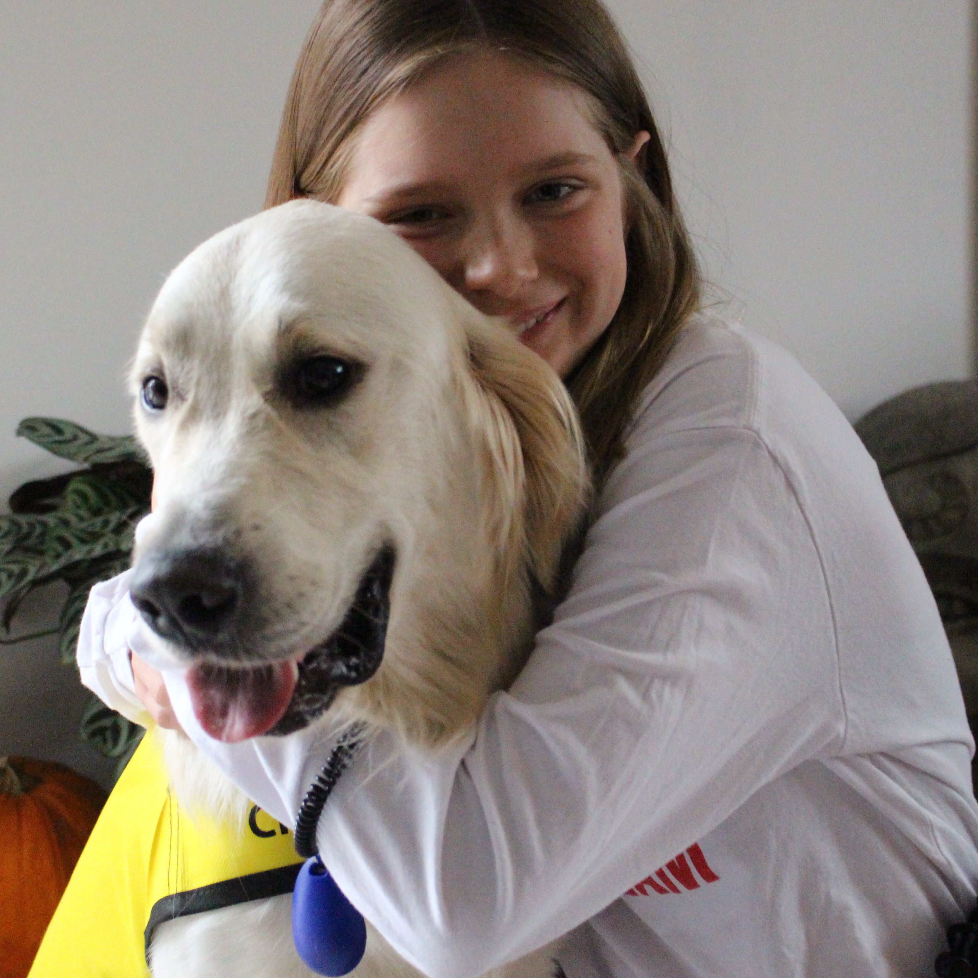 “When I first met my buddy dog George, there was an instant connection. It felt like I had been waiting for him for so long, and I was so happy when I finally got him in October 2019. I didn’t expect how immediate the bond would be. The moment he came in the door I knew he was the right dog for me. George is a sweet and affectionate golden retriever who loves cuddles. He enjoys going on walks and exploring, and he gets along with everyone – other animals included. He can sense whenever something is wrong and will do whatever he can to make you feel better. My family and I first heard about CNIB Buddy Dogs while we were at Blind Beginnings Camp – a summer camp on Hornby Island, British Columbia for children and youth who are blind or partially sighted and their families. I was instantly intrigued. We had three dogs growing up, but after we lost them, I wanted a companion. I lost that connection. I want a guide dog, but I’m not old enough yet to get one, and I want to feel more comfortable before I get one. George isn’t like any other dog I’ve ever met. He’s built a connection with me that I’ve never had before. He’s always there for me and has made such a difference in my life. He is friendly, cooperative and great to talk to. We like to go for walks and play fetch together – ooh, and we love to cuddle. Everyone that meets George loves him – my friends and family adore him. Thank you for everything you’ve done for me, George. You’ve made such a difference in my life.”