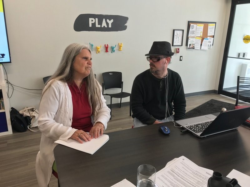 A man and woman sit at a table at the CNIB London Hub. She is reading a braille document. He has a laptop open in front of him."Our goal was to present this information in a way that speaks directly to our community’s specific experiences and concerns," says Avery. "We have invested in training CNIB staff to be more knowledgeable and confident in their ability to provide relevant legal information and connect participants with legal services."