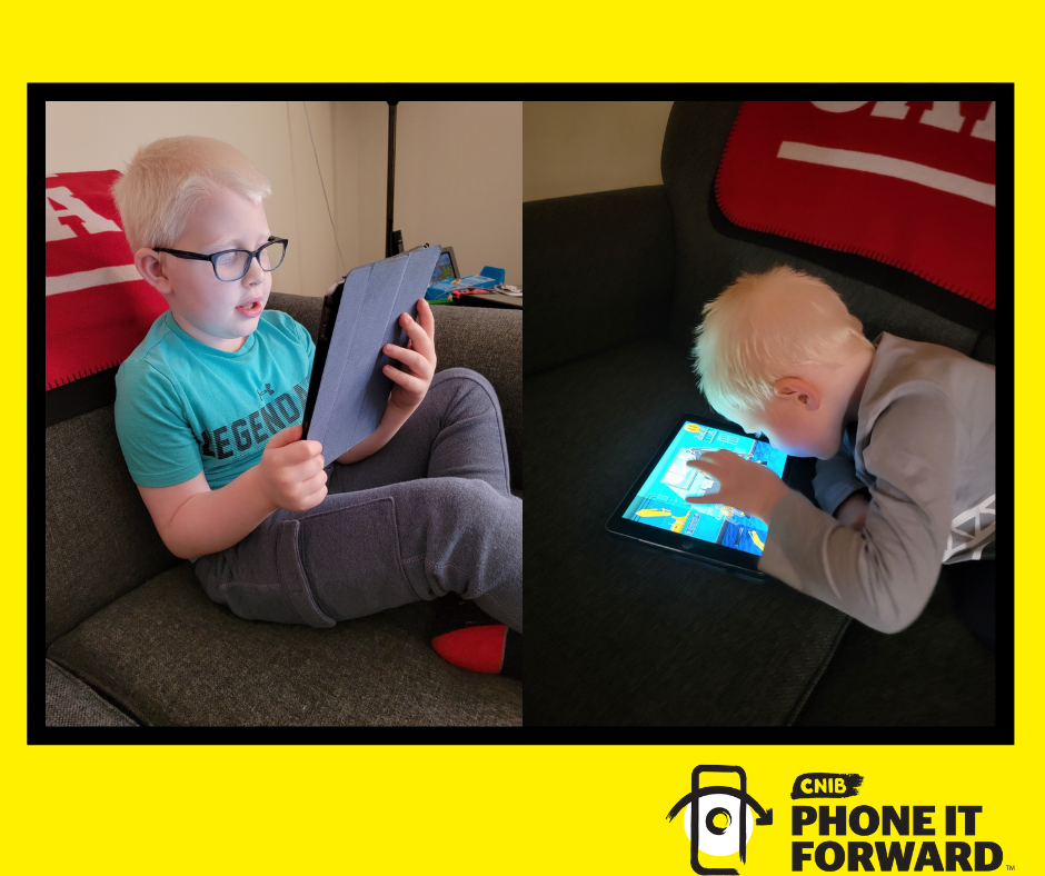 Before Amy Burk left to compete for Team Canada in the Tokyo 2020 Paralympic games, her sons, Lucas (7) and Ryan (3) received two iPads through CNIB’s Phone It Forward program.