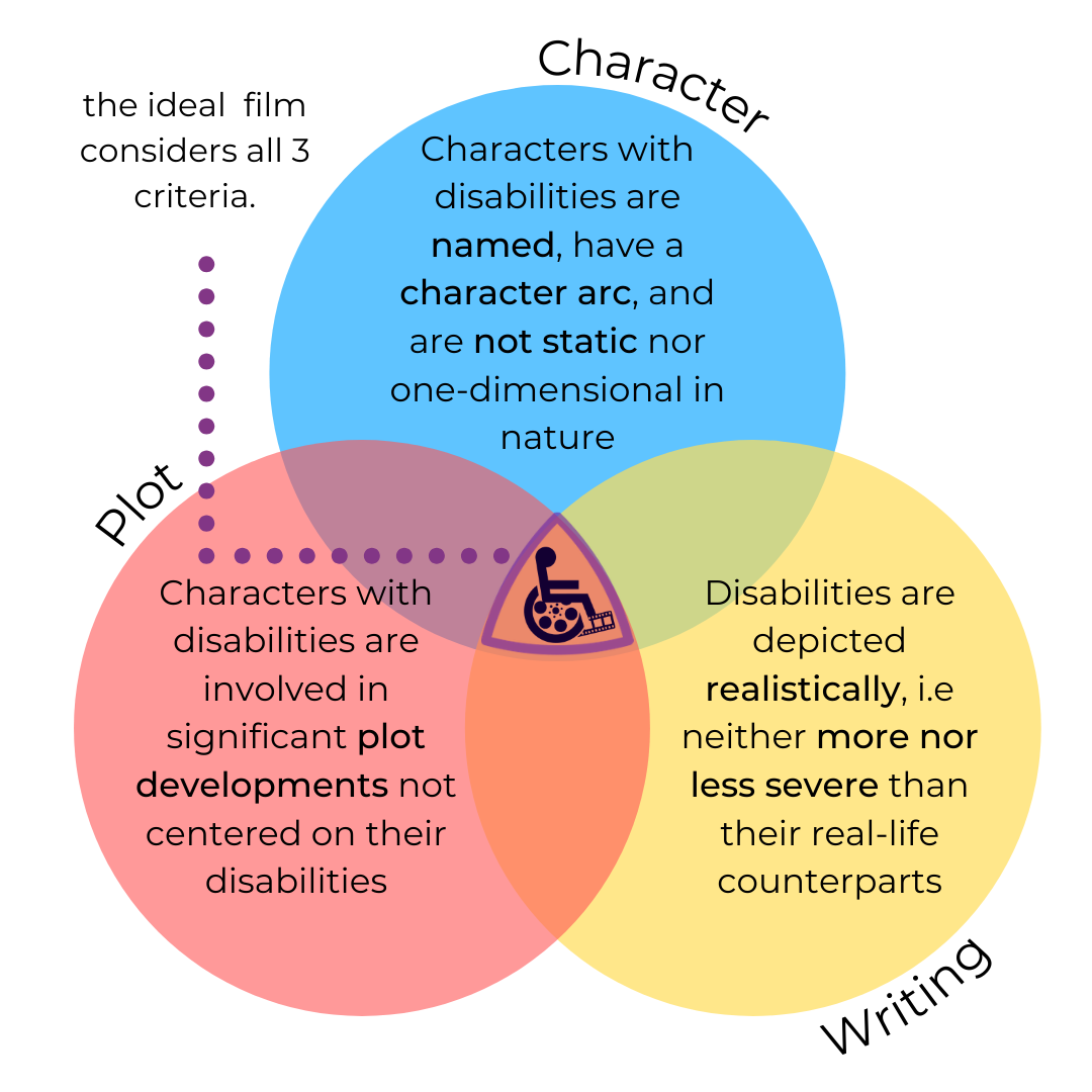 I created the Disability Depiction Criteria (DDC). This three-pronged pass/fail system analyzes the accuracy of representations, frequency of stereotypical portrayals, and the frequency with which disabled roles are portrayed by actors with actual disabilities.