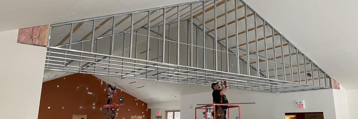 To address the noise and echoes that make comfortable conversations difficult, the Dining Hall and Lounge are undergoing an essential makeover. Engineers, electricians, and experts in the construction of acoustic ceilings are hard at work to minimize noise pollution and refresh our fabulous eating and meeting spaces.