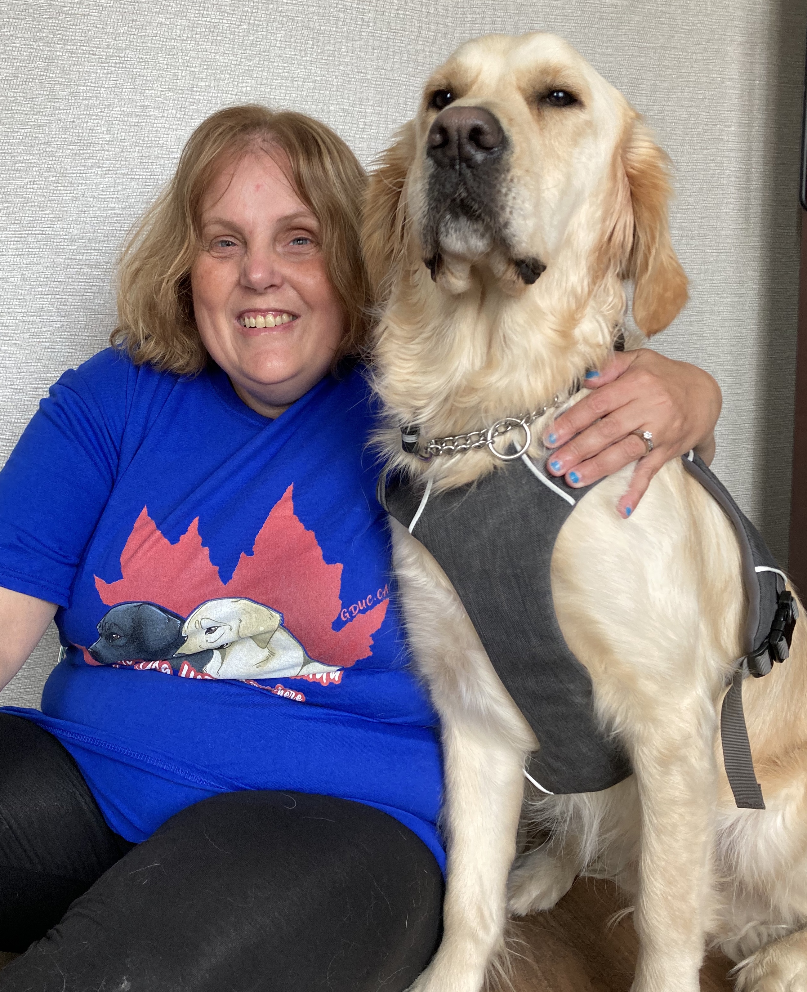 “I felt an immediate connection with Cody. I just wanted to learn more about this sweet boy in front of me. That’s exactly what he is – a sweetie. He’s so happy when someone tells him how handsome he is. He makes me laugh daily, both on and off the clock. He enjoys chasing his tail as much as the next dog, but he’s definitely serious when he’s working. The freedom and confidence I have when I'm with Cody is something I truly appreciate. We can go anywhere, and I never feel stressed. Times are challenging during a pandemic but having Cody by my side is the best. He has the most amazing memory. One visit is all it takes for him to know where he’s going. When I first met Cody, he was with one of CNIB's Guide Dog Mobility Instructors. The three of us walked around the neighbourhood, introducing Cody to his new environment. When that same instructor came back for a check-up, he asked Cody to show him a certain bench at a bus stop that he learned about during that first visit. Cody did it – no problem. I’ve been a guide dog handler for 31 years. Cody is the first golden retriever I’ve ever worked with, and I’d have to say that I’m hooked!” – Chris