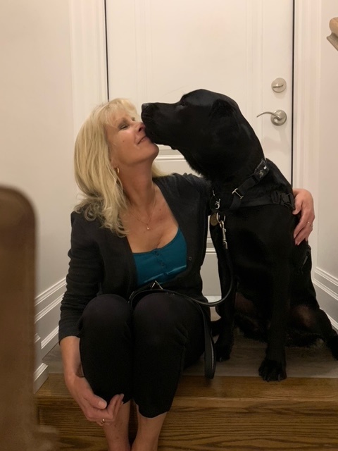 “I have always been a big fan of Canadian singer/songwriter Jeff Healey, so when I found out that the CNIB Guide Dog I had been matched with was named in his honour, I was thrilled to say the least! . Since I was matched with Healey in September 2020, I have the freedom to do so many things that were hard before. I also have a newfound confidence along with lots of love, laughter and snuggles in my life. When he’s in harness, he’s so stoic and respectful. He knows that he has an important job to do. It blows me away how smart he is, and how incredibly hard he works for me. There was one day we were on an outing, and a little girl walked by and asked her mother if she could pet Healey. The mother said no and explained that he was working to help me, and the little girl said that it explains why he looked like he was thinking so hard! I had a chuckle when I heard that, but that’s just the truth of it. I didn’t know how much my heart would grow with love, awe and wonder for my amazing boy. Whether it’s work or playtime, Healey is a rock star – always ready for our next adventure.” – Karen