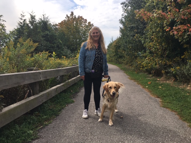 “The way Charlie looks up at me when we’re out and about makes me feel so special. The level of companionship, love and loyalty that I receive from him is remarkable. He has an innate ability to understand there’s a time for work, rest and play. I remember being overwhelmed with excitement and happiness when we first met. Charlie has made me more confident and secure. He’s always by my side and I have a feeling of emptiness when he’s not there. It's like a part of me is missing. We've never been refused service or denied access, but we had an unfortunate incident getting off a bus onto a very busy road after a snowstorm. Charlie checked for the safest route and we ended up in a large, snow-filled ditch. Poor Charlie was trying to get us to the sidewalk, but we were knee-deep in snow. I was annoyed at the lack of consideration and empathy from the bus driver who didn't offer any assistance. Fortunately, Charlie did his job and ensured I was safe. He’s my left-hand man, and even after such a short time together, I know I would be lost without him.” – Lindsay