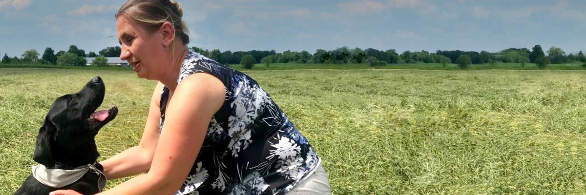 "When I first met Jess in June 2020, there was no other option but to feel absolute joy! She was so enthusiastic and extremely sweet. Jess is a small, black Labrador retriever and such a wiggly dog. Her little tail wags so hard that the back end of her wiggles with it. She is also incredibly affectionate. Every morning, Jess greets me with delight that another day is starting. She never fails to have me smiling within two minutes of getting out of bed. She just radiates joy! With a guide dog, I am able to walk to the same places as I could with a cane, but I can do it faster and easier. There aren’t many times where I say “OMG, I couldn’t have done this without my dog,” but there are countless times where I think, “OMG, how easy was that!”. Rather than hunt for a door when going to a new building, I just ask Jess to find it. Rather than explore a snowbank with my cane to find the way around, we just glide through the openings. The life-enhancing part isn’t just limited to me. Jess brings joy to my office building every day. People on my floor are so delighted to see her make her greeting rounds in the morning. We have been warmly welcomed pretty much everywhere we go. I recently moved to a new city and have been going into new businesses where I don’t know the layout. I have had people offer to bring me things, but when I ask them to show me how to find things independently with Jess, they have helped. To the vast majority of Canadians, I would like to thank you for the help you offer and for the curiosity you display. I hope you stay interested and take advantage of the opportunity to support guide dog training in Canada.” – Louise