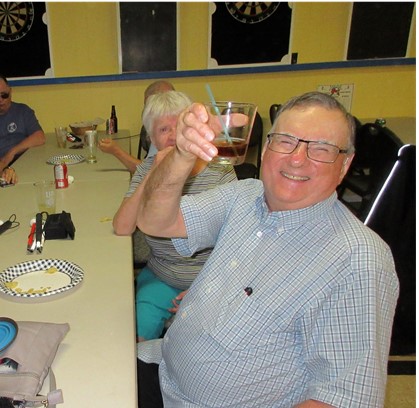 Wayne Laffin, sitting at a table with fellow guests at Legion Night at the Legion in MacTier, raising his glass with a big smile.“July 6, 2019, was my very first time, ever, going to CNIB Lake Joe. I had an excellent experience, leaving with many great memories. A couple of activities that stand out are tubing. I can’t believe I did that! When I do it again, I won’t be as nervous. It was so much fun. There is a game in the new rec centre that involves a long table, two hand paddles and a ball. You have to hit the ball with the paddle to get in the goal across from you. It’s called Power Showdown. I played this for the first time and was unbeatable. Also, archery, that was a first! I never got a bullseye but got very close. So many things, like the pontoon boats, the beach, I could go on. When this COVID thing is over, I will be anxiously waiting to go to camp once again.”