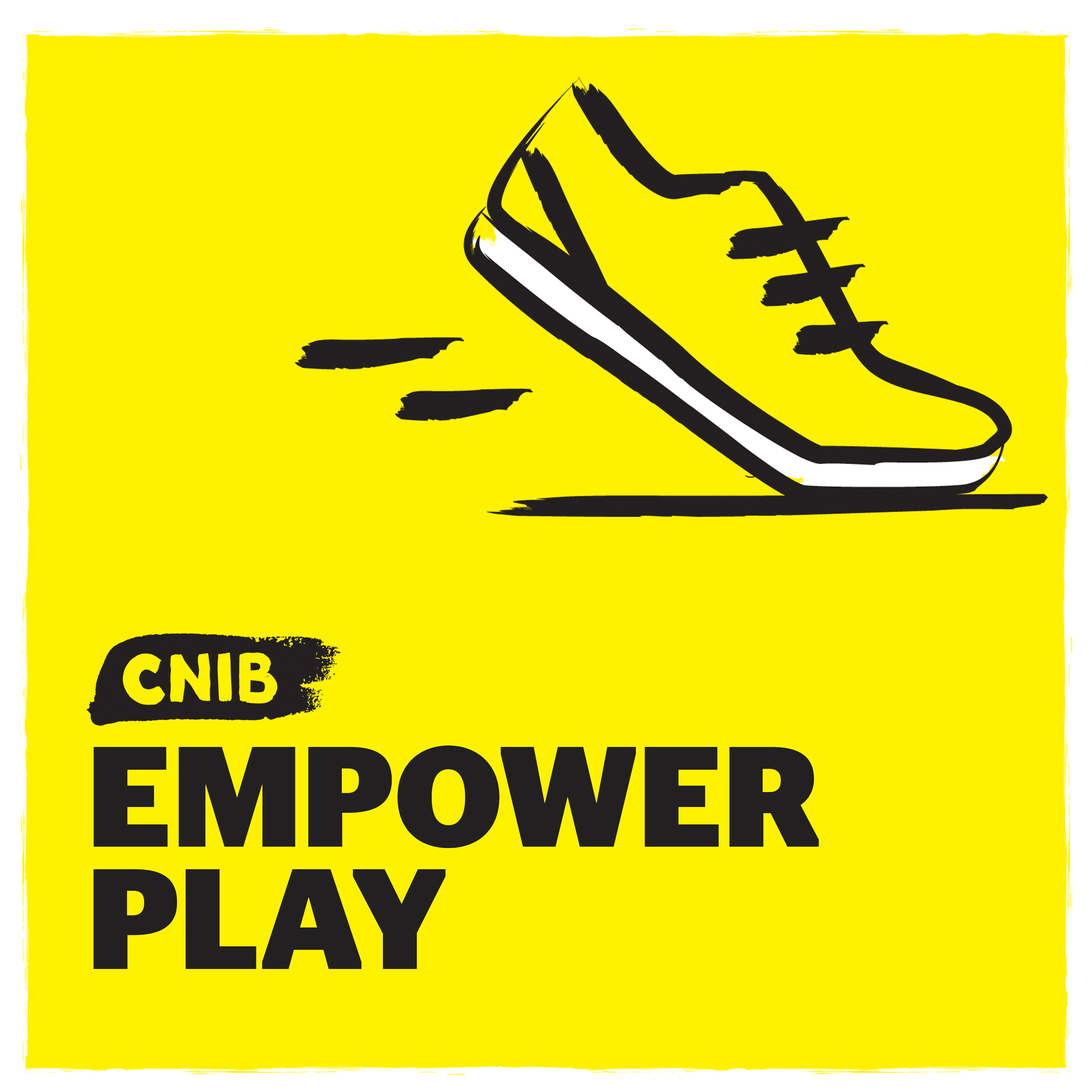 CNIB EmpowerPlay logo. An illustration of a running shoe on a yellow background. The 'EmpowerPlay' Podcast captures stories from individuals with sight loss, on how being physically active, participating in sport, taking on a new challenge, learning a new skill, and stepping outside your comfort zone, can lead to amazing self discovery.