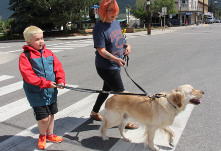 Marco, a 9-year-old boy with sight loss from Armstrong, BC (an hour north of Kelowna), didn’t know what to expect when CNIB Guide Dogs came to his home with Baker, a 2-year-old golden retriever. He was uncomfortable with dogs. But, after Marco petted Baker with his bare foot, he decided it was time to take his new Buddy Dog for a walk.