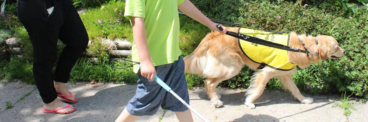 Mason, a 9-year-old boy with sight loss, couldn't wait to meet his Buddy Dog, a Golden Retriever named Queenie. The night before she arrived, he was so restless with anticipation that he could hardly sleep.