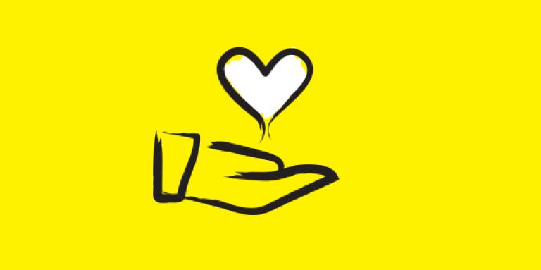 Illustrated hands with a heart in it. Leave a gift in your will.